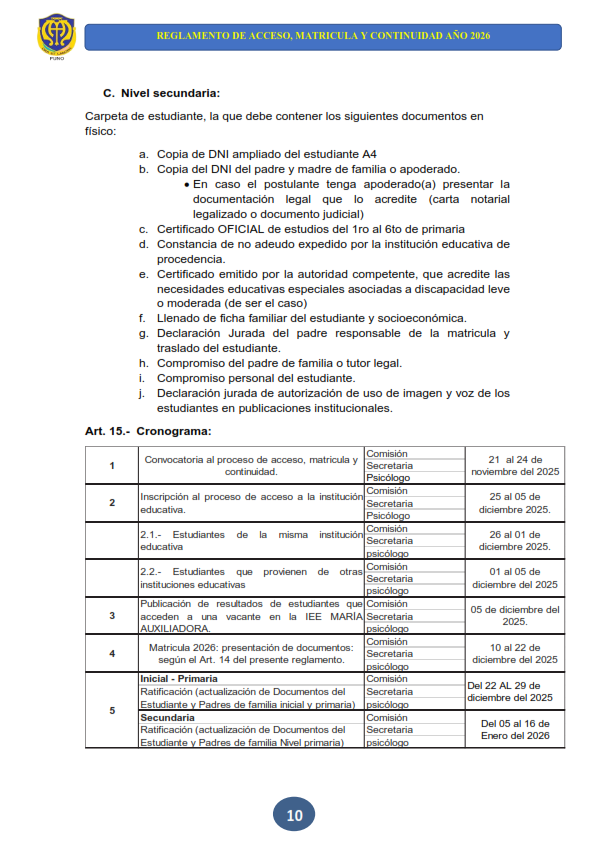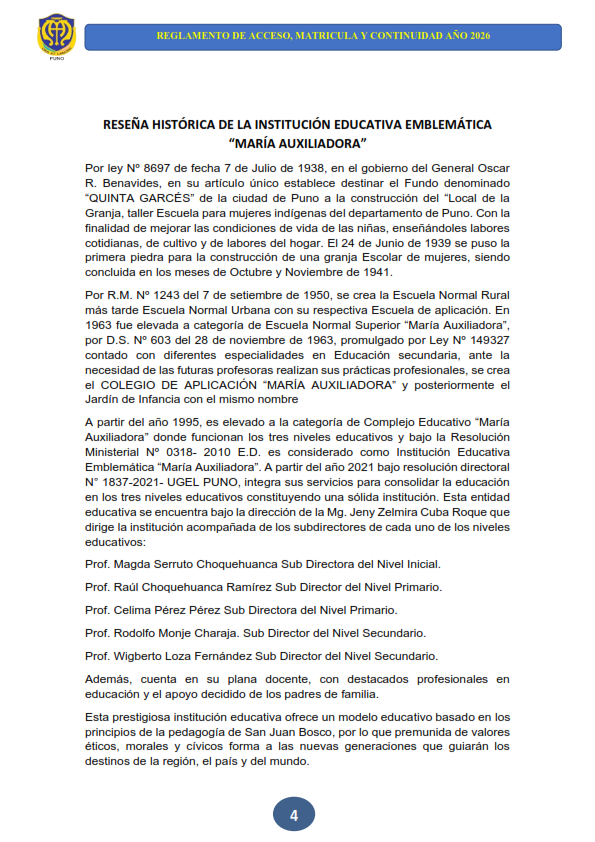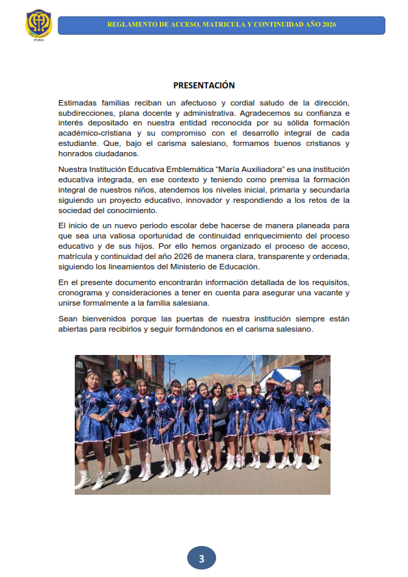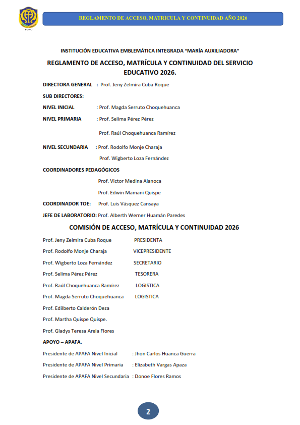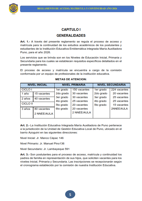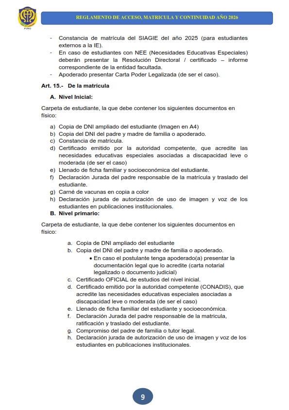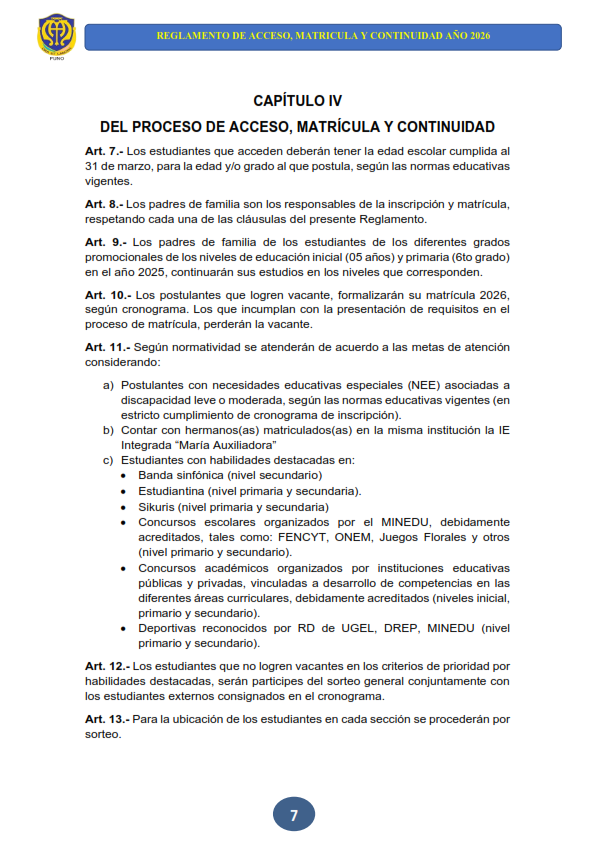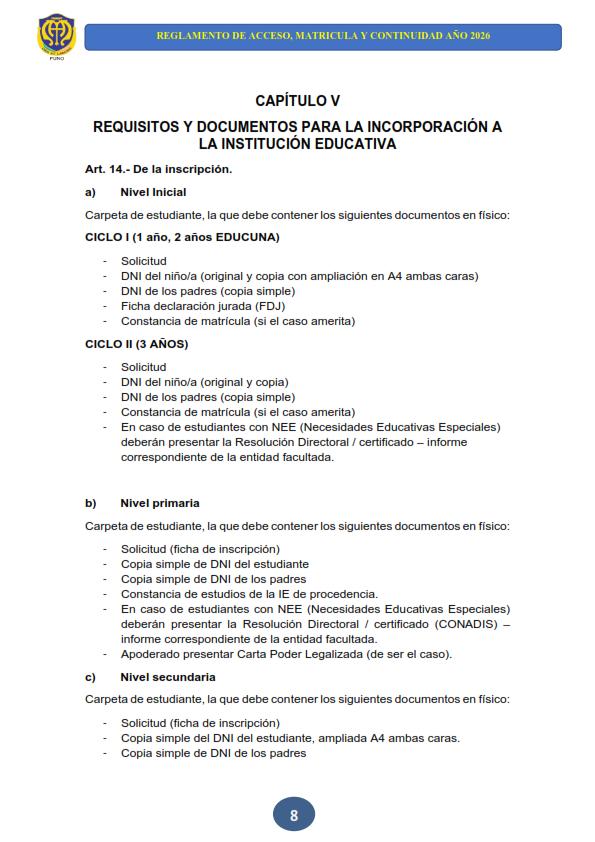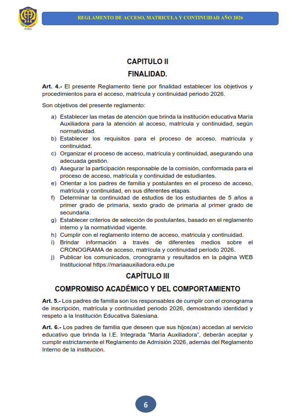 Reglamento de acceso, matrícula y continuidad del año 2026